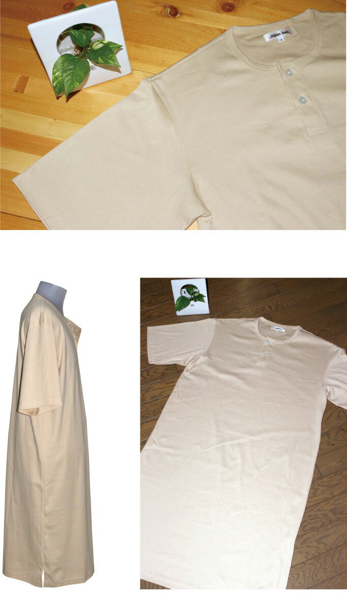 【pajama house】パジャマハウス スムース無地(Tシャツタイプ)2つボタン 半袖メンズスリーパー ベージュ色 大人用半袖メンズスリーパー(パジャマ) パンツがなくホテル気分になれる 上着がロング丈のナイトウェアです S サイズ 身長:155〜165cm 胸囲:80〜88cm 着丈:107cm M サイズ 身長:165〜175cm 胸囲:88〜96cm 着丈:107cm L サイズ 身長:175〜185cm 胸囲:96〜104cm 着丈:115cm LLサイズ 身長:175〜185cm 胸囲:104〜112cm 着丈:115cm 素材 綿100% 日本製 紳士用スリーパーファンには必見☆