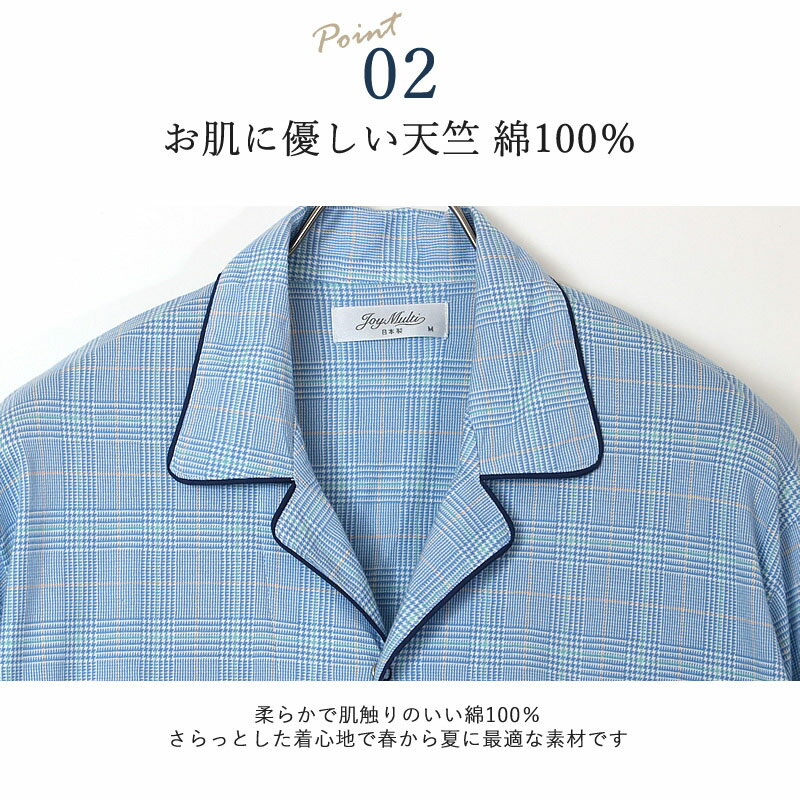 商品詳細 柔らかく伸縮性のあるコットン100%素材を用いた日本製パジャマ。