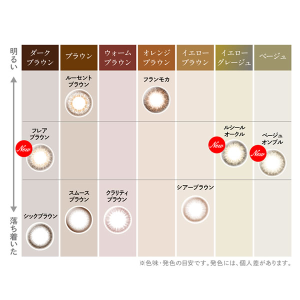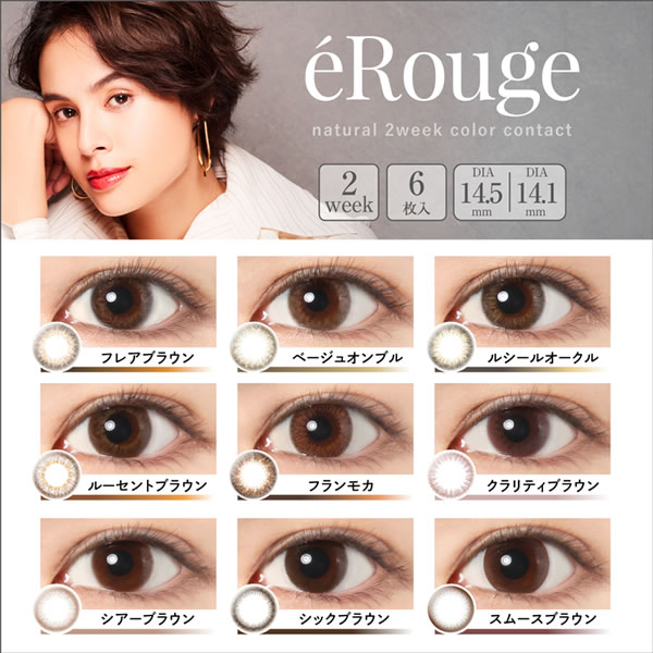 商品詳細 販売名 トーメー2WEEKS カラー フレアブラウン ベージュオンブル ルシールオークル ルーセントブラウン フランモカ クラリティブラウン シアーブラウン シックブラウン スムースブラウン 枚数 1箱6枚 使用期間 2週間 度数 ±0.00(度なし) -0.50〜-6.00(0.25step) -6.00〜-8.00(0.50step) レンズ直径 クラリティブラウン/シックブラウン/シアーブラウン/スムースブラウン:14.1mm フレアブラウン/ベージュオンブル/ルシールオークル/ルーセントブラウン/フランモカ:14.5mm ベースカーブ 8.7mm 着色直径 クラリティブラウン/シックブラウン/シアーブラウン/スムースブラウン:13.4mm フレアブラウン/ベージュオンブル/ルシールオークル/ルーセントブラウン/フランモカ:13.5mm 含水率 38.6% 医療用具承認番号 22600BZX00238000 区分 高度医療管理機器 製造国 台湾 製造販売元 株式会社トーメーコンタクトレンズ 販売元 株式会社アイセイ 広告文責 有限会社ビレイズ 06-6536-9555【コンタクトレンズご購入に関する遵守事項】 ●コンタクトレンズは高度管理医療機器です。