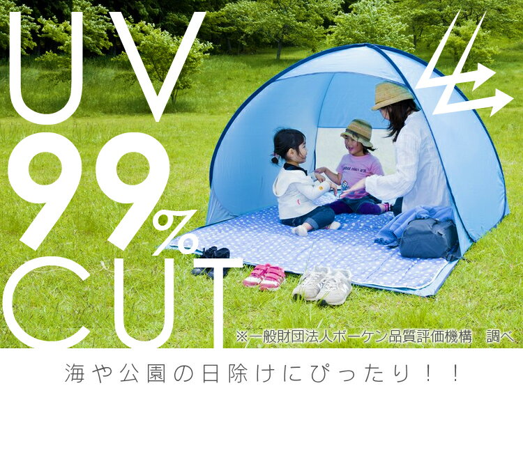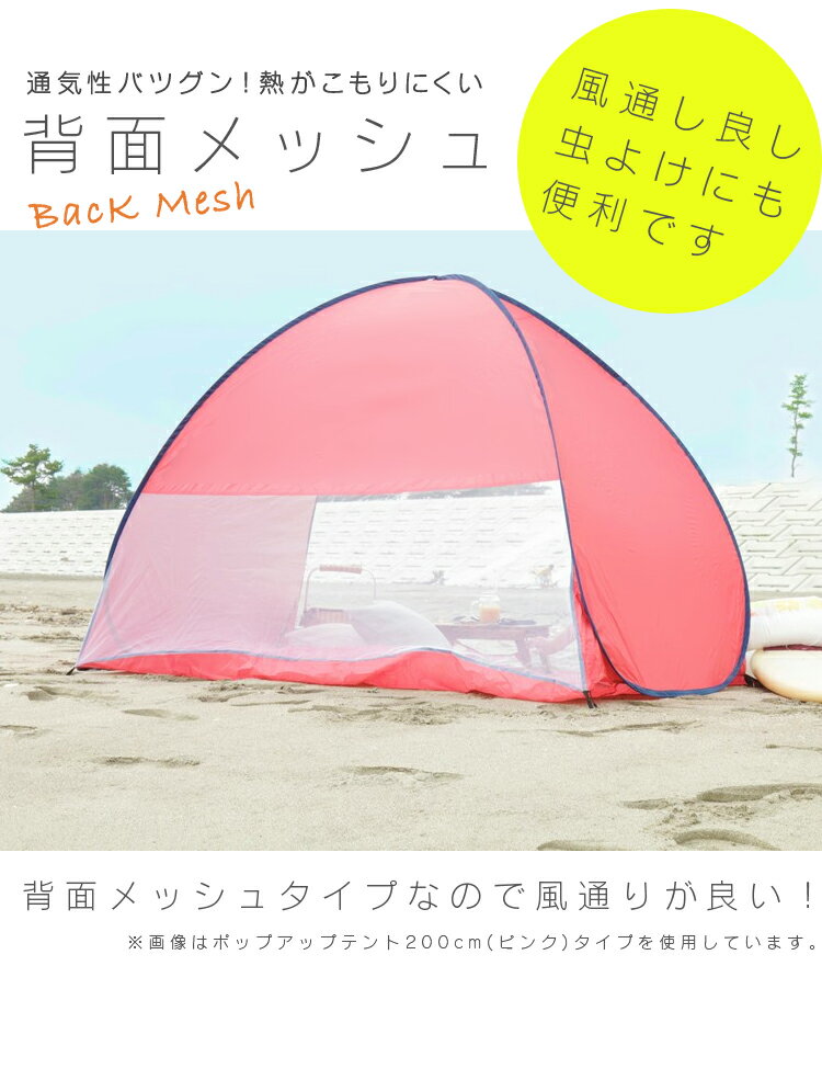背面メッシュで、通気性抜群! ●商品サイズ 使用時(cm):幅約150×奥行約160×高さ約105 収納時(cm):Φ約47×高さ約2 ●生地素材:ポリエステル ●重量(約):1kg ●カラー:ピンク・ブルー ●耐水圧:800mm ●UVカット:99% ●付属品:専用収納ケース、ペグ6本★
